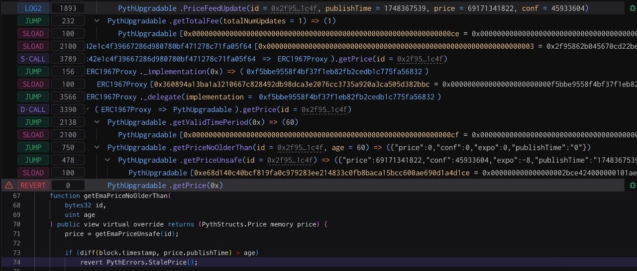 The priceUpdate timestamp is Tue May 27 2025 17:38:59 GMT+0000 and you are trying to fetch at May-27-2025 05:40:39 PM UTC, which >60 seconds.
