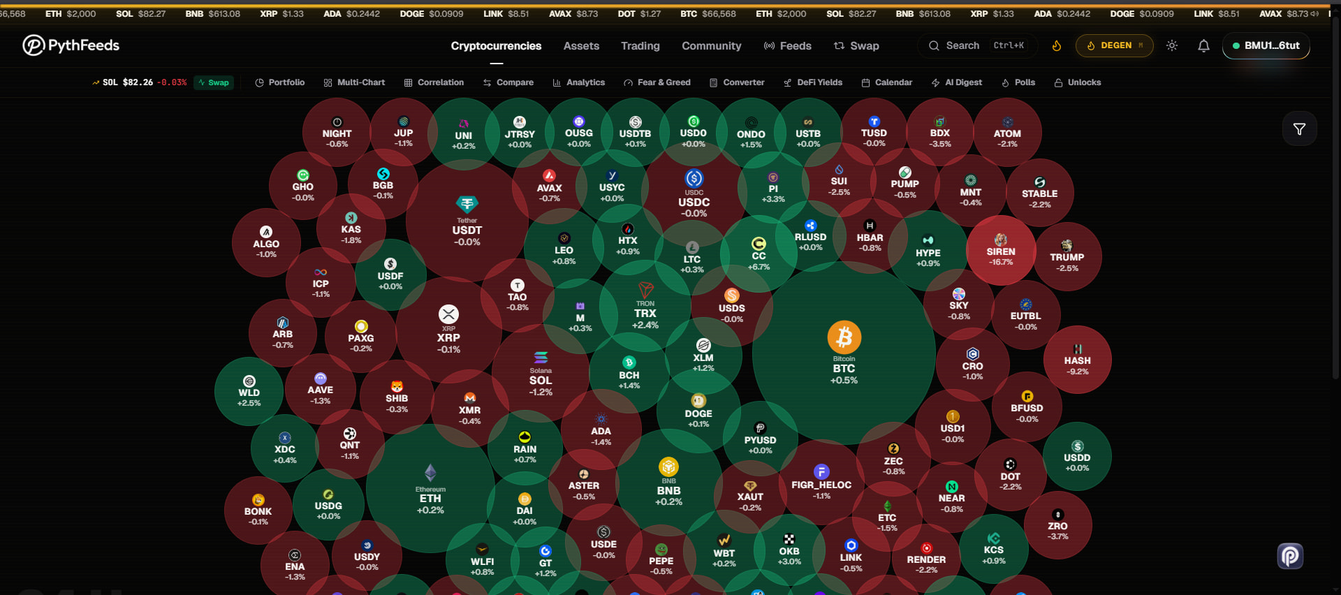 PythFeeds is a market dashboard for crypto and related assets: live rankings and charts, swaps and DEX tooling, calendars, analytics, portfolio views, and AI helpers. It combines CoinGecko-style context with Pyth Network prices pulled from Hermes (crypto plus FX, metals, commodities, and equities where mapped) so spot values follow oracle updates for fresher, more transparent pricing than exchange aggregates alone.